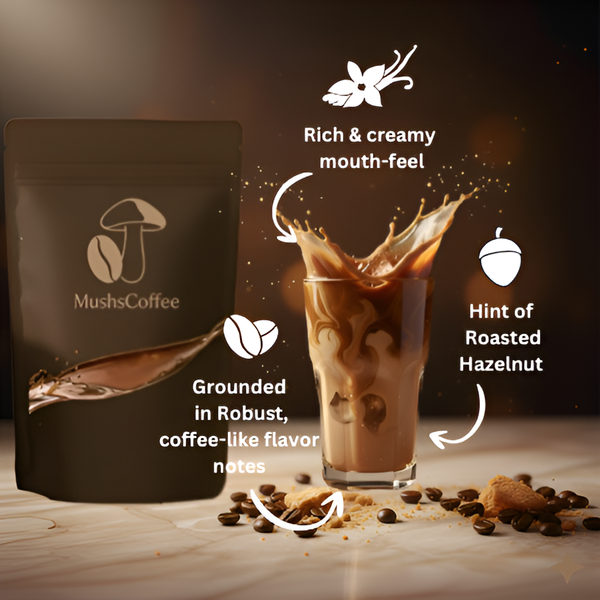 Ingredients: Organic Instant Coffee, Organic MUSHS COFFEE Mushroom Blend (Cordyceps, Reishi, Turkey Tail, King Trumpet, Shiitake, Lion's Mane), Organic Prebiotic Blend (Acacia Fiber, Inulin Fiber, Tapioca Fiber).