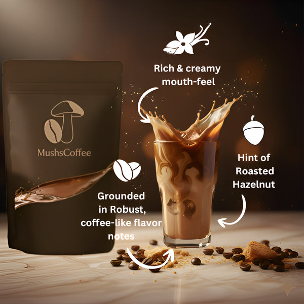 Ingredients : organic instant coffee with our signature MushsCoffee mushroom complex, featuring Cordyceps, Reishi, Turkey Tail, King Trumpet, Shiitake, and Lion’s Mane.organic prebiotic mix of Acacia, Inulin, and Tapioca fibers.
